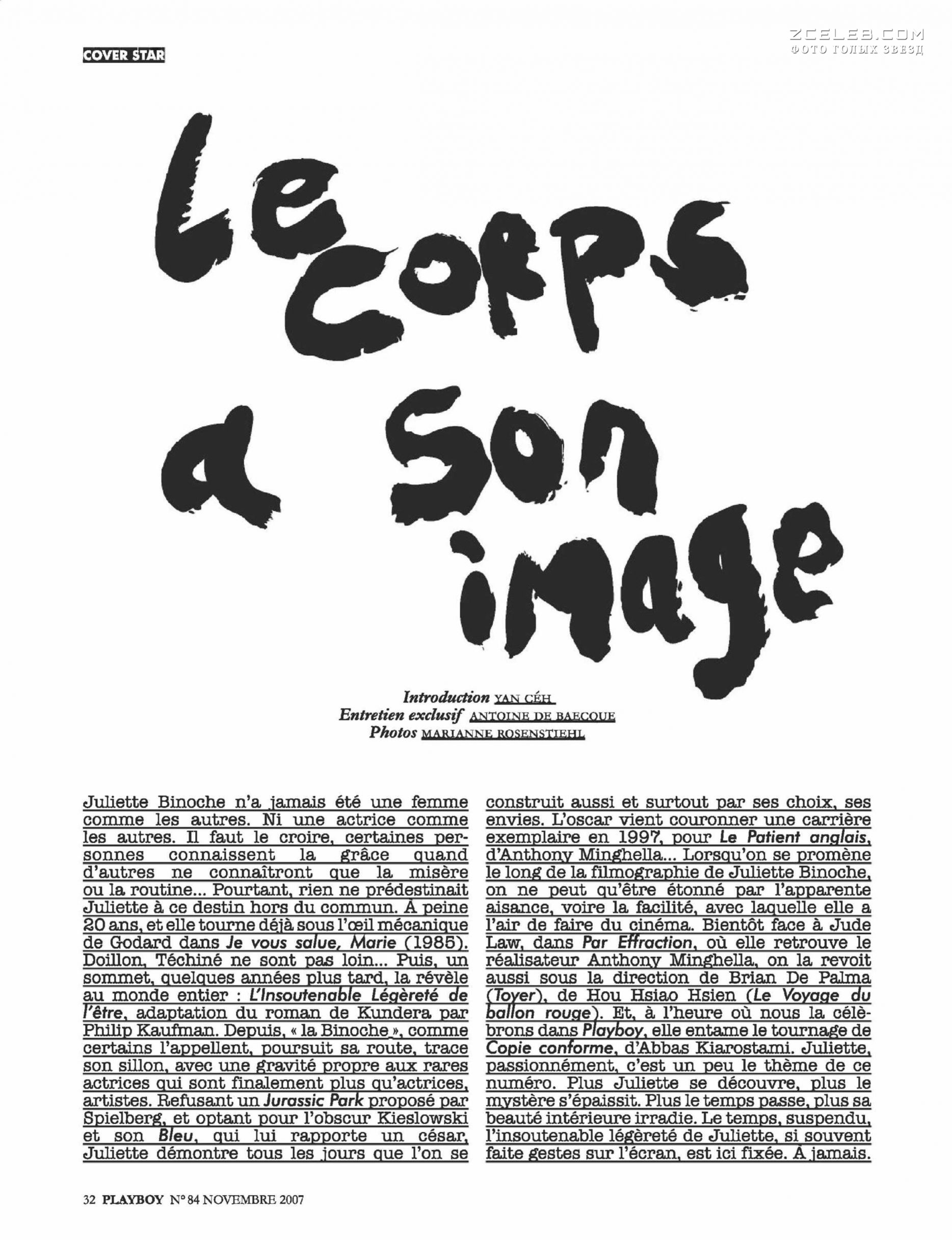 Обнаженная Жюльет Бинош в журнале Playboy, Ноябрь 2007